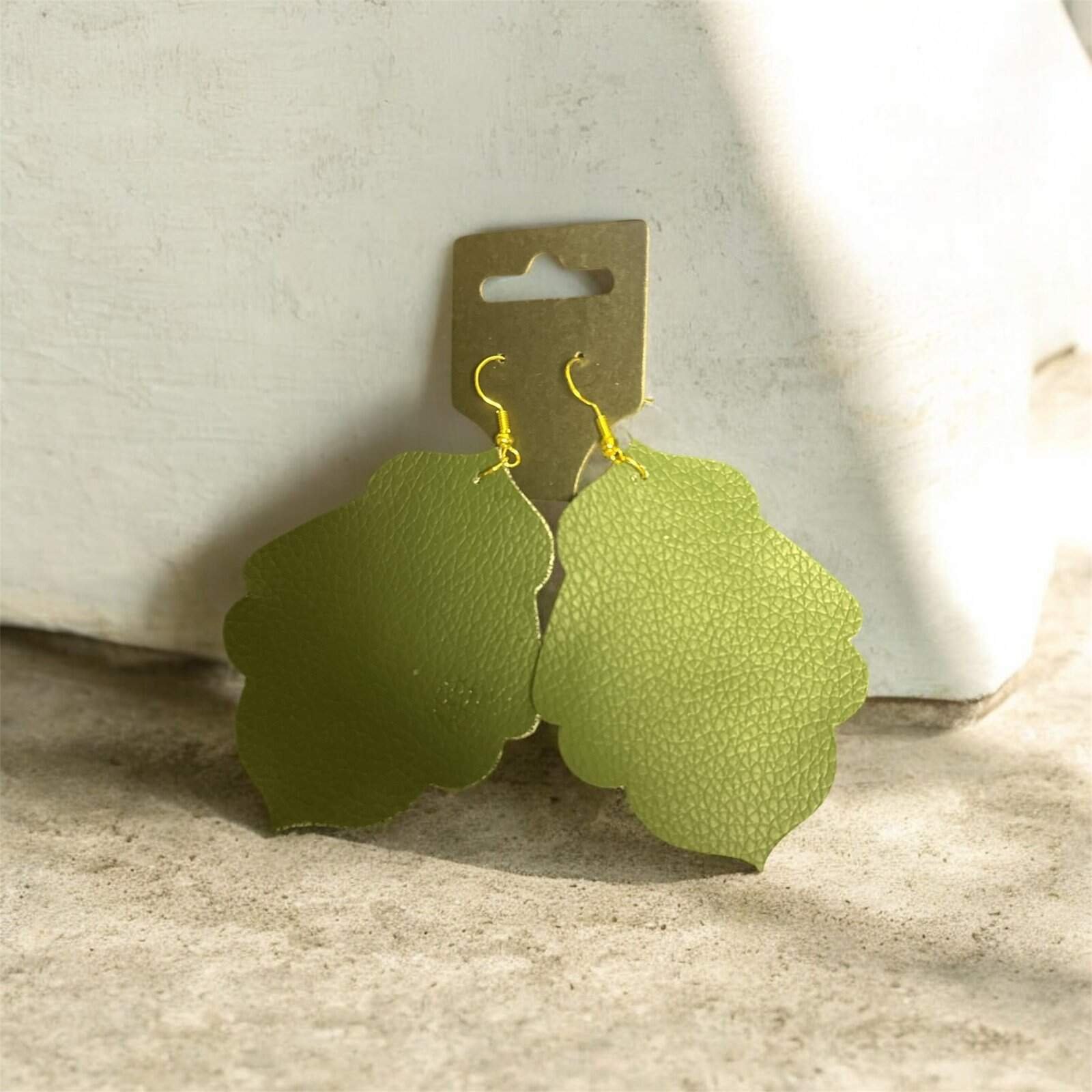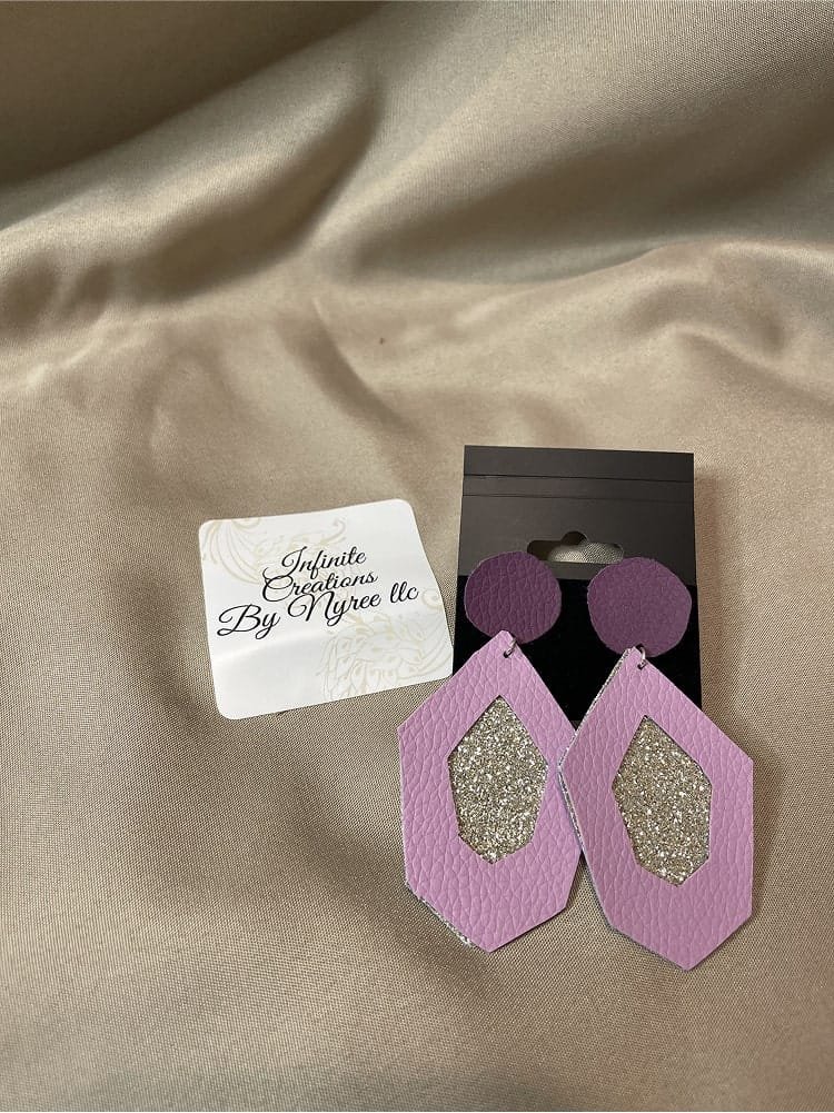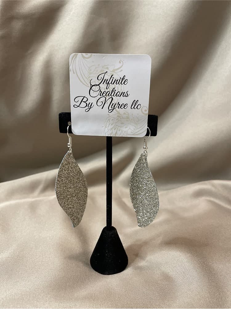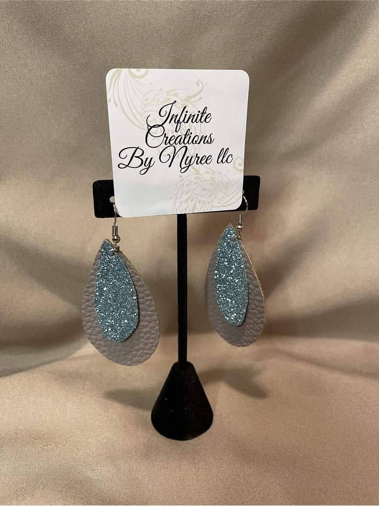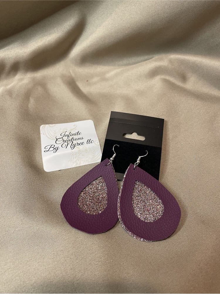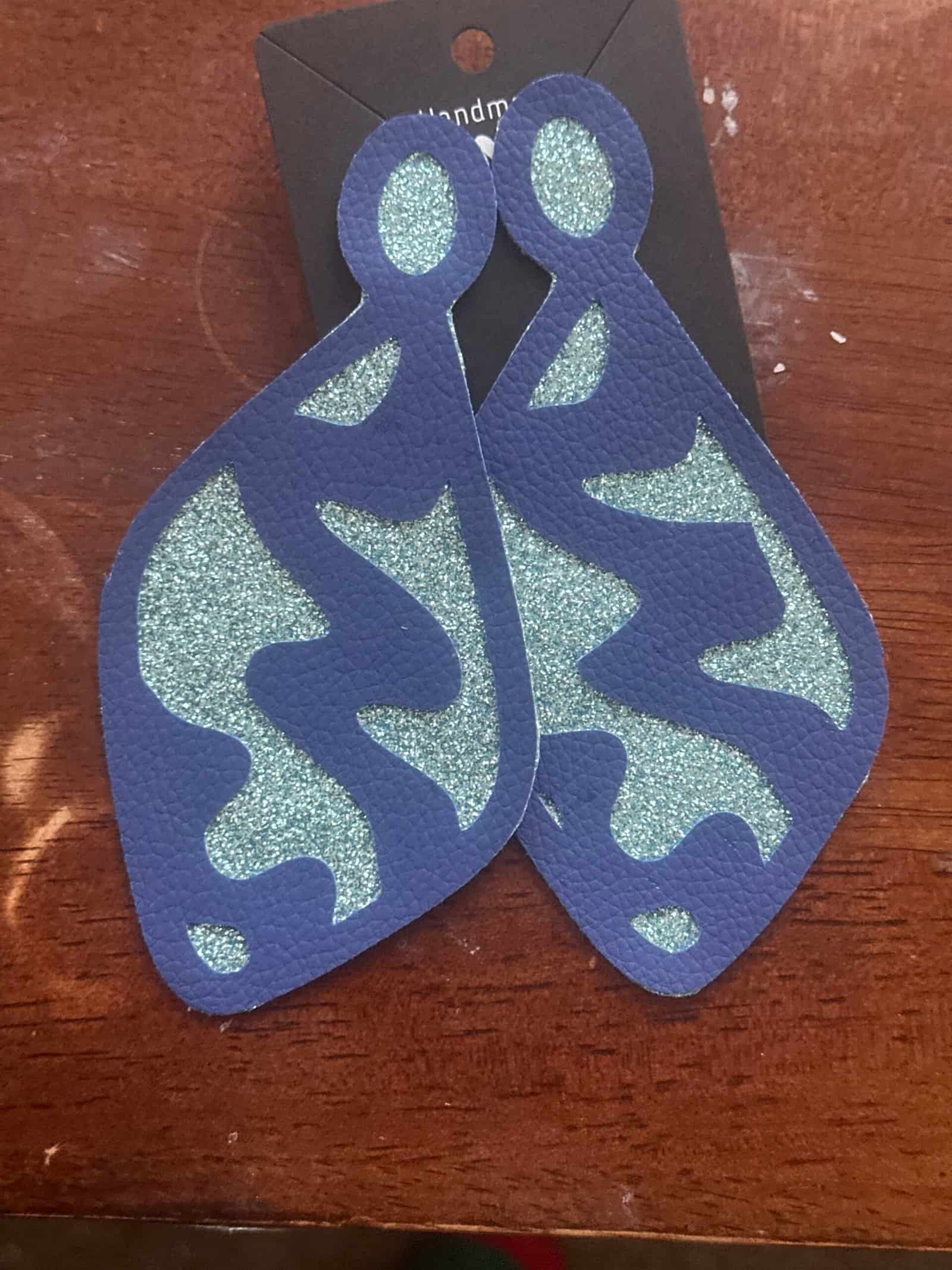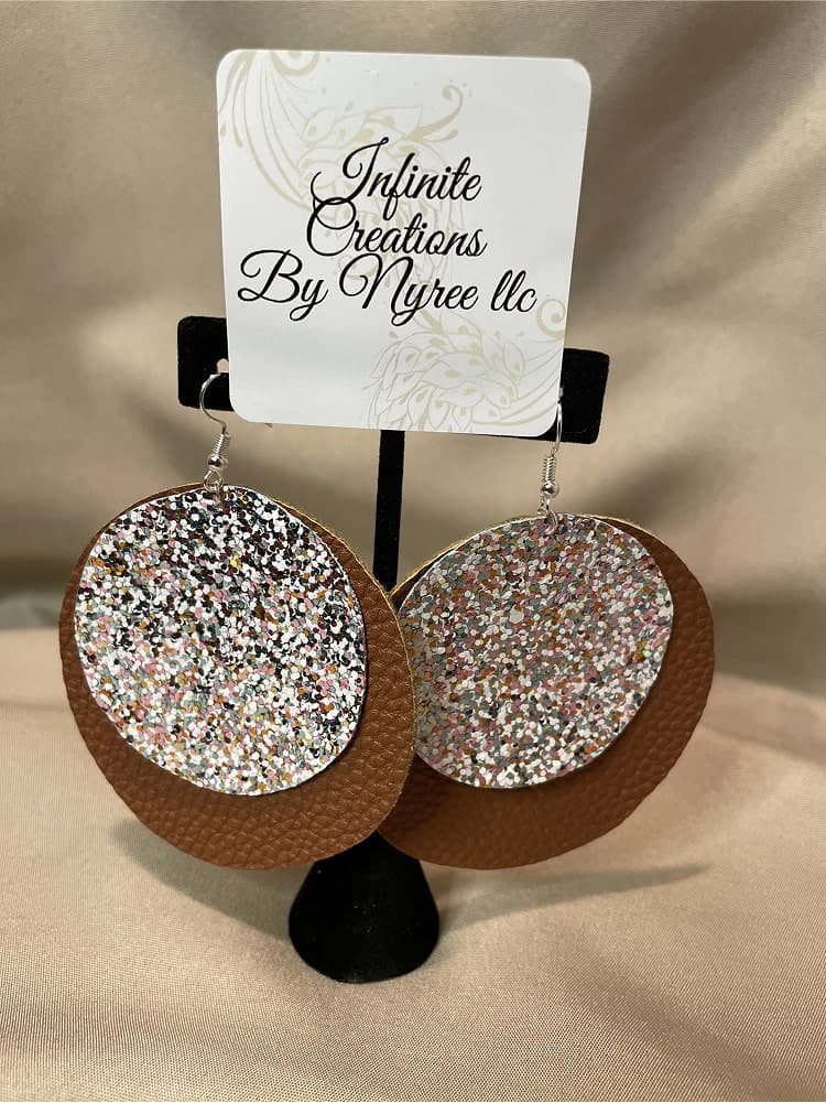 These handcrafted faux leather earrings make a bold statement with their shimmering silver glitter finish and subtle turquoise accents along the edges. Designed in a large round silhouette, they offer lightweight comfort while delivering eye-catching sparkle. Perfect for adding a touch of glam to any outfit, these earrings blend modern flair with artisanal charm—an ideal accessory for those who love to stand out with style.