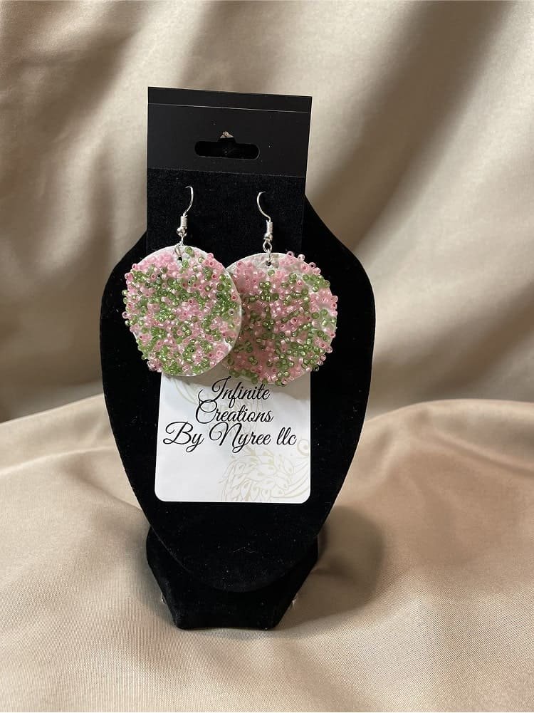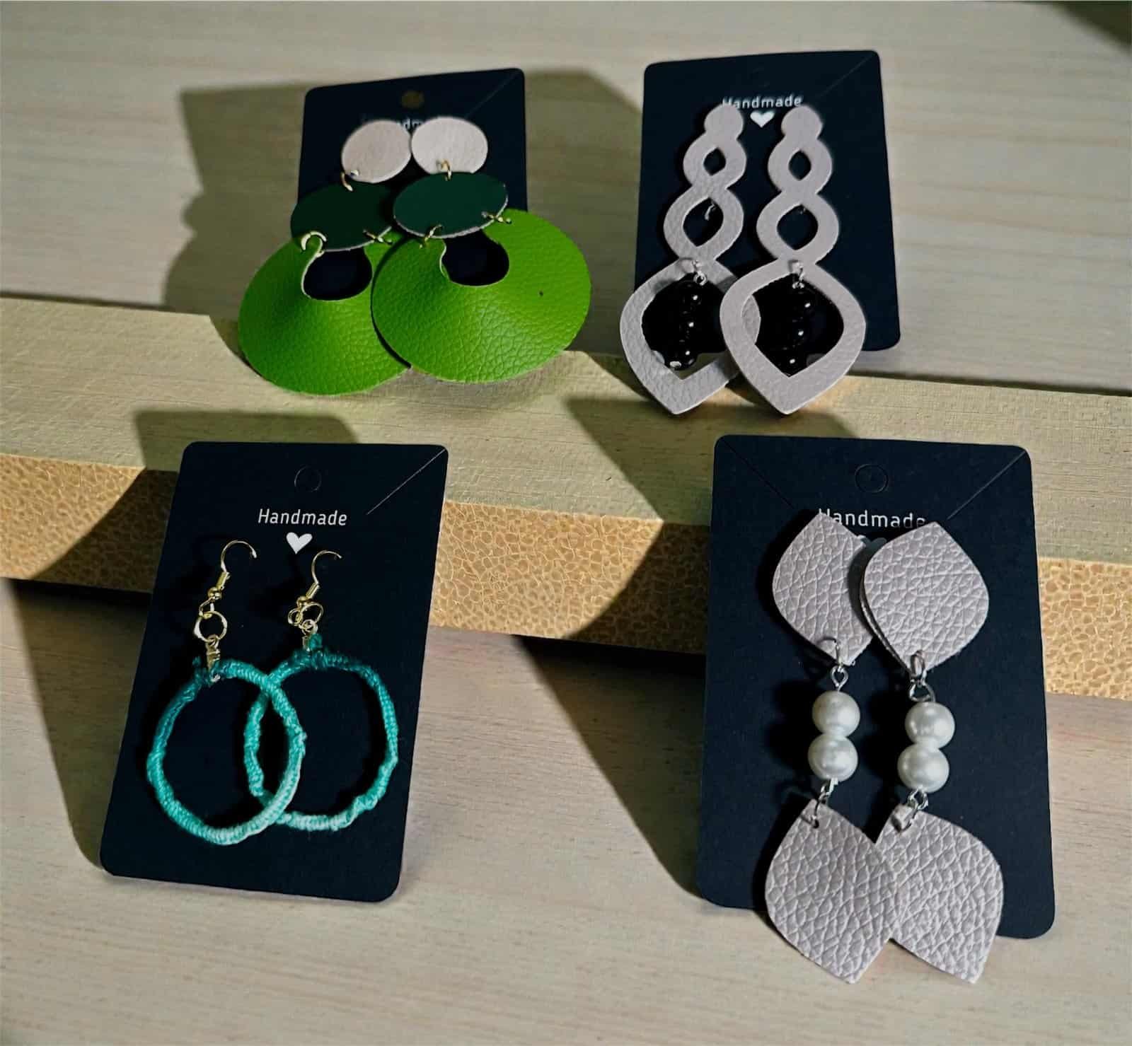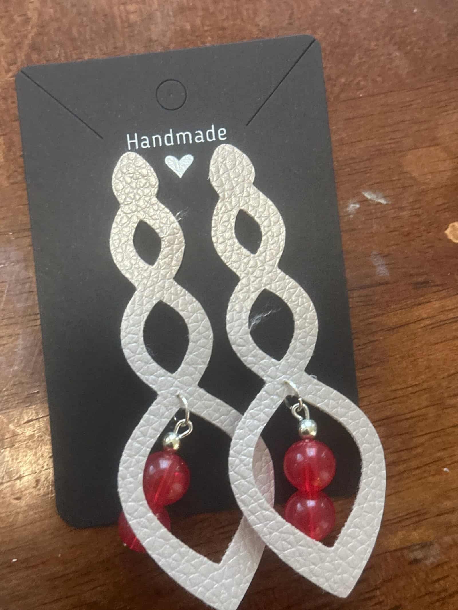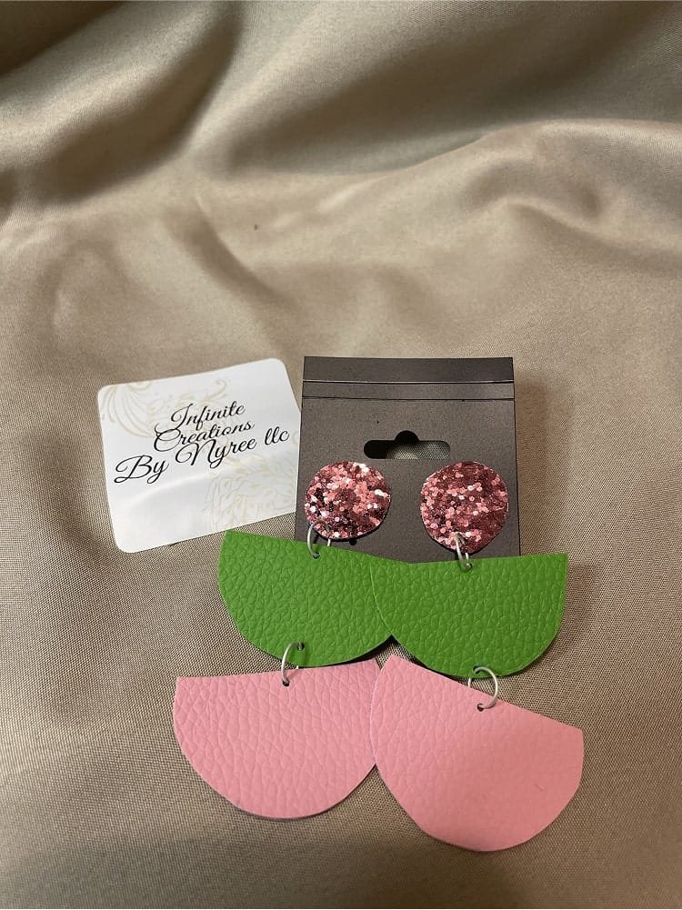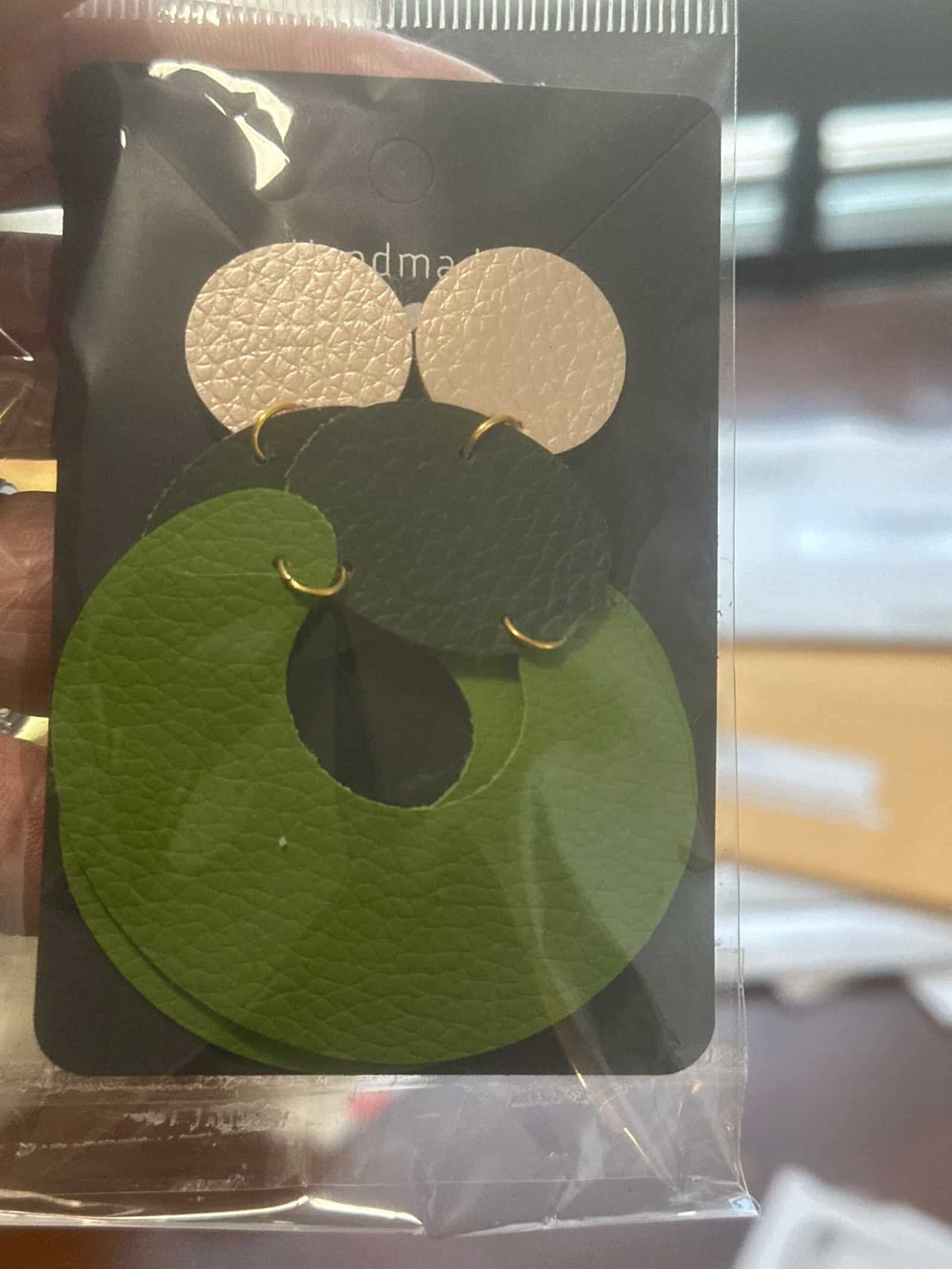 These handcrafted faux leather earrings make a bold statement with their shimmering silver glitter finish and subtle turquoise accents along the edges. Designed in a large round silhouette, they offer lightweight comfort while delivering eye-catching sparkle. Perfect for adding a touch of glam to any outfit, these earrings blend modern flair with artisanal charm—an ideal accessory for those who love to stand out with style.