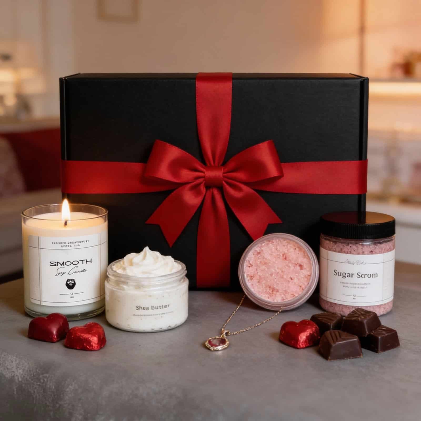 Celebrate love, luxury, and intentional self‑care with our exclusive Valentine’s Day Gift Boxes. Thoughtfully curated and handcrafted, each box is designed to ignite the senses, nourish the skin, and wrap your loved one in beauty from the inside out. Presented in a sleek black box tied with a bold red decorative ribbon, these sets make the perfect romantic gesture or self‑love treat.
